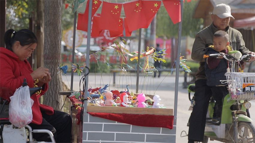 残疾的做小生意的村民和村里顾客。图片来源:人民网