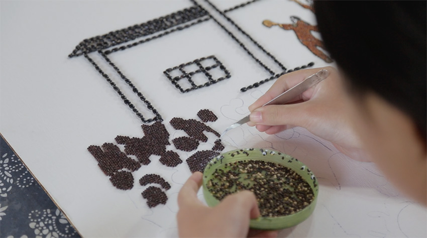 正在做粮画的女工。图片来源:人民网