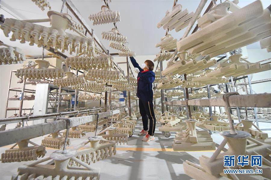 12月3日,一名妇女在山东省淄博市沂源县鲁村镇鲁村三村一家铸造企业的车间劳作。 新华社发(赵东山 摄)