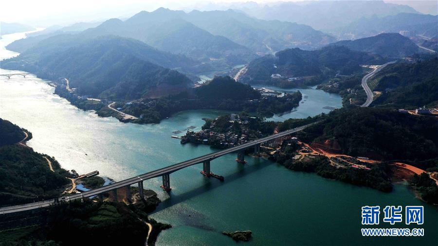 横跨红水河的广西河池至百色高速公路(11月25日无人机拍摄)。新华社发 (高东风 摄)