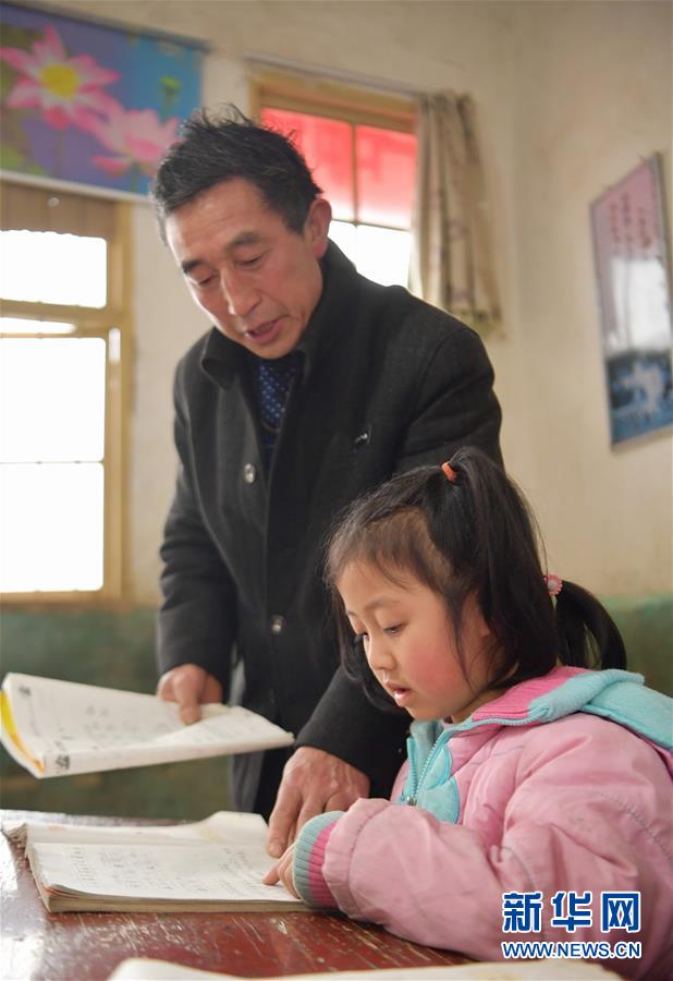 12月4日,周美成老师在朝南教学点辅导学生。 新华社发(杨顺丕 摄)