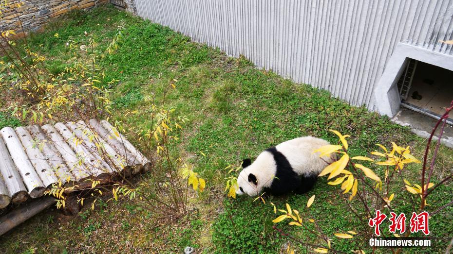 大熊猫“福伴”走入保护研究中心神树坪基地户外活动场。邱宇 摄