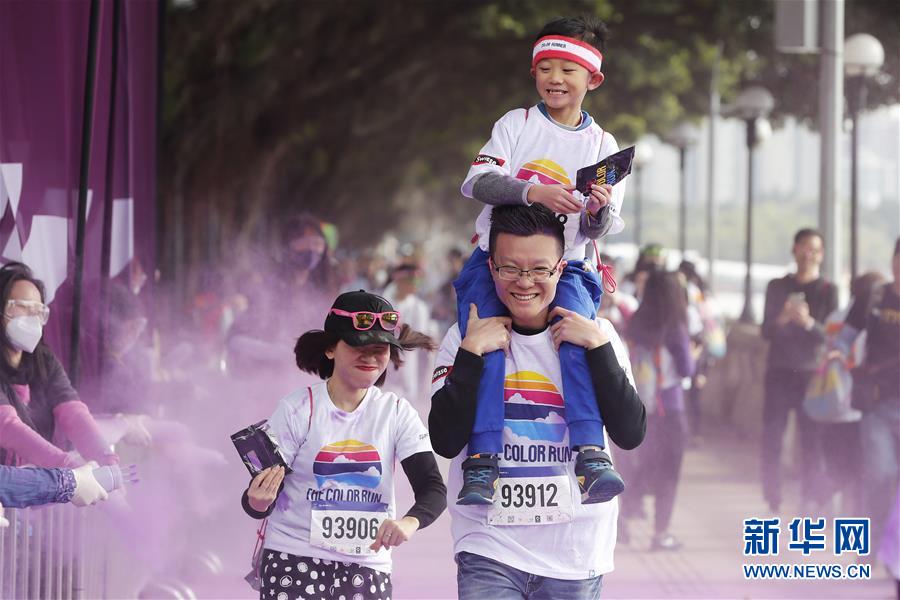 众多市民参加在广州举办的以“快乐运动,绿色出行”为主题的彩色跑活动(2017年12月16日摄)。 新华社记者 吴鲁 摄