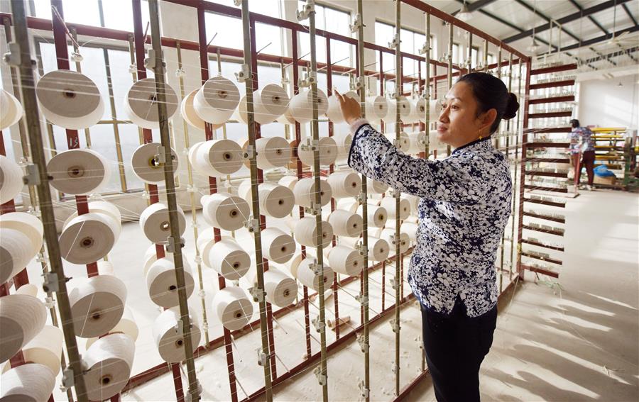河北省衡水市冀州区在精准扶贫工作中,采取“公司+农户”的模式,引导扶持农村留守妇女学习手织老粗布工艺,带动当地800余名农村留守妇女就业。