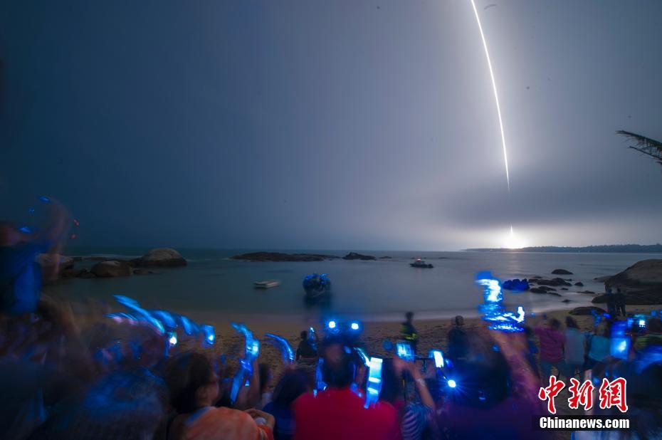 2017年4月20日19时41分,搭载“天舟一号”货运飞船的长征七号遥二运载火箭,在中国海南文昌航天发射场点火发射。中新社记者 骆云飞 摄