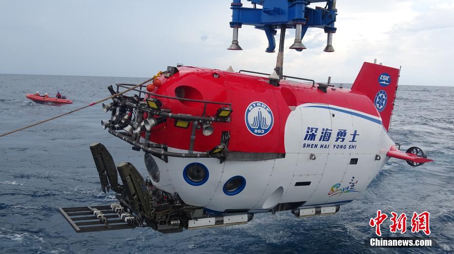 2017年10月3日,“深海勇士”号载人深潜试验队在中国南海完成“深海勇士”号载人潜水器的全部海上试验。图为“深海勇士”号载人潜水器海上试验。中新社记者 张素 摄