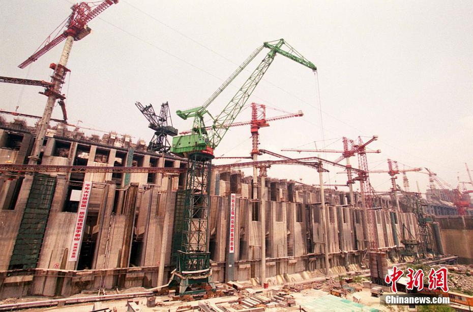 三峡水电站是世界上规模最大的水电站,也是中国有史以来建设最大型的工程项目。1994年正式动工兴建,2003年开始蓄水发电,于2009年全部完工。图为建设中的三峡大坝。中新社记者 毛建军 摄