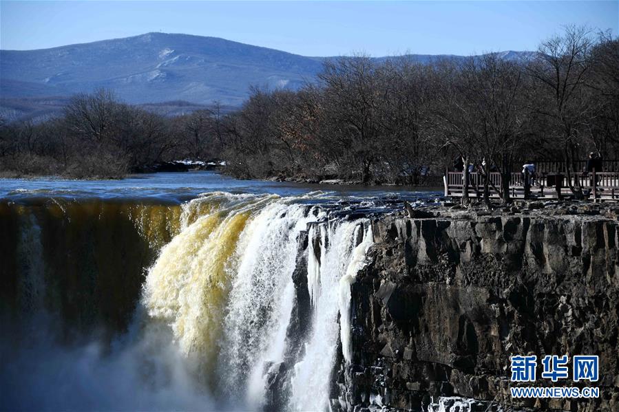 镜泊湖飞瀑“逆”冬展奇观