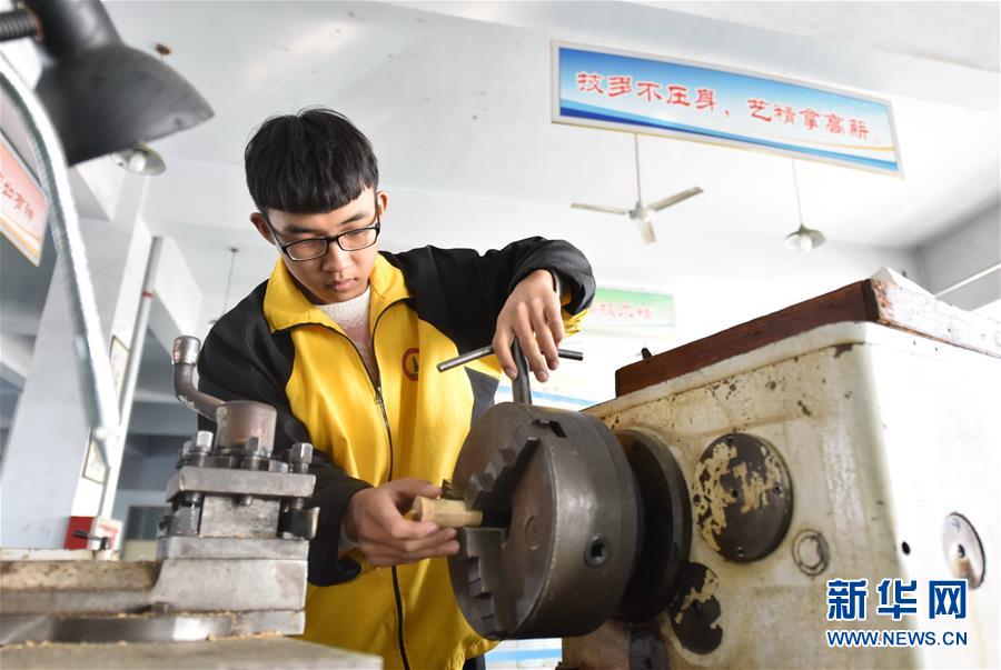 12月5日,定州市职教中心学生在进行机床实操练习。