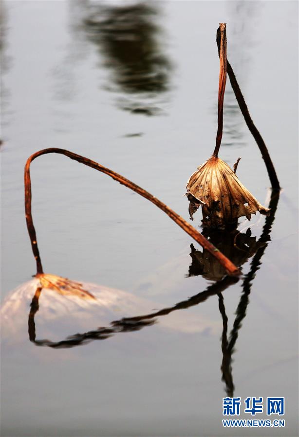 12月5日在山东省临沂市郯城县拍摄的残荷。 新华社发(张春雷 摄)