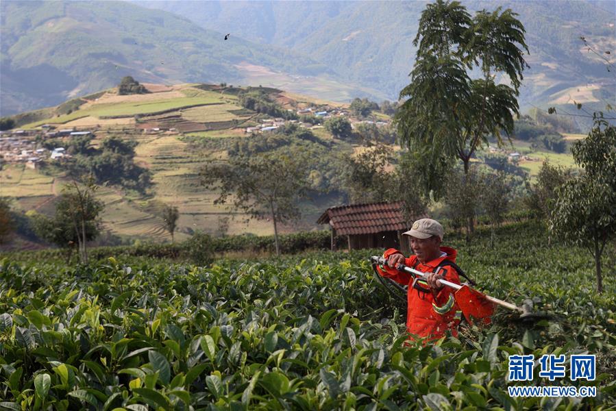 12月3日,云南省澜沧拉祜族自治县南岭乡黄回村村民在管理冬季茶园。茶叶种植是该村村民的主要经济收入来源。 新华社记者杜涓涓摄
