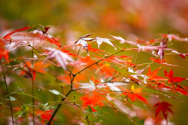 大雪节气即将来临,气温骤降,冬雨中的红枫,色彩斑斓、独具风韵。 新华社发(王罡 摄)