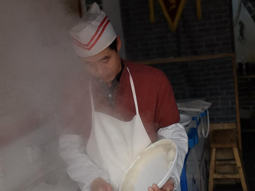 贾街商贩制作面食“剔尖”。图片来源:人民网