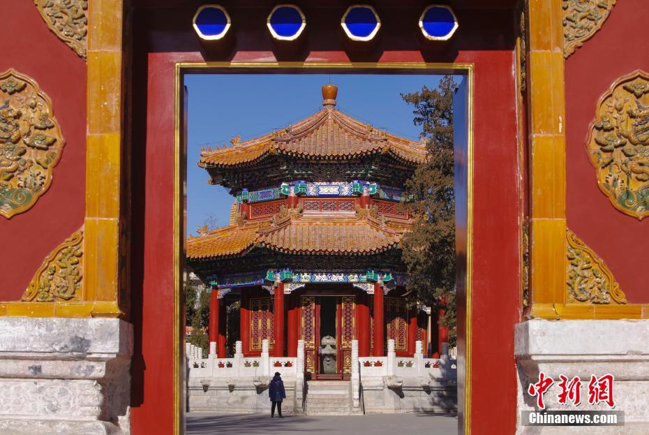 12月6日,北京景山公园寿皇殿建筑群的碑亭。寿皇殿建筑群始建于明代,清乾隆年间在景山正北重建,建筑仿照太庙规制而建,属中国古代最高等级的建筑形式,是北京中轴线上除故宫外的第二大建筑群。从1955年开始一直由北京市少年宫使用,2016年4月起全面修缮后,于近日向公众免费试运营开放。中新社记者 贾天勇 摄