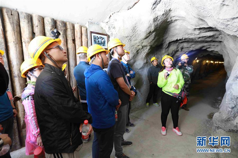 新疆各地党员干部在位于阿勒泰地区富蕴县的可可托海矿区阿依果斯矿洞参观学习(2017年7月10日摄)。