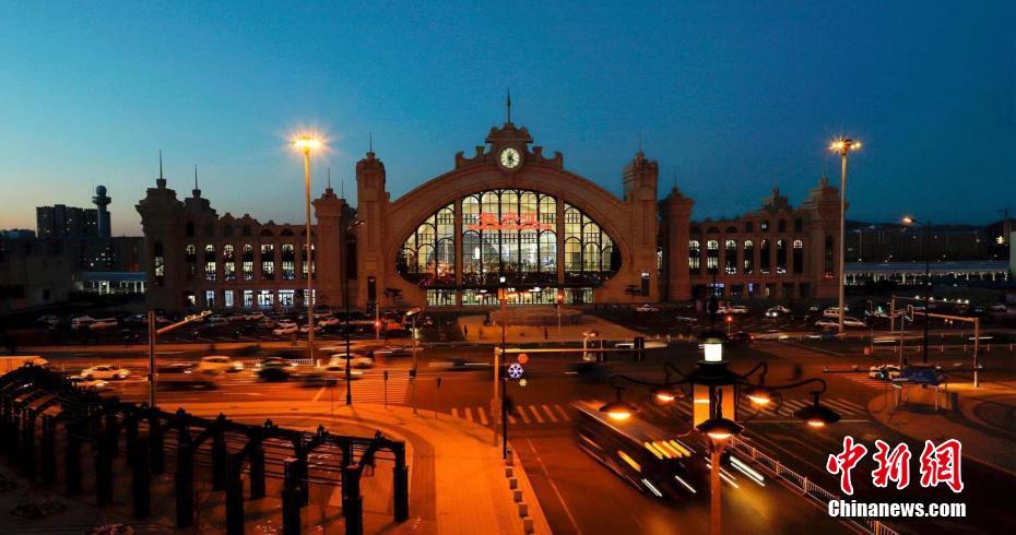 12月6日,中国“八纵八横”高铁路网中“最北一横”重要组成线路哈牡客专的终点站——新建牡丹江站全面竣工,同时也是中国北疆满洲里、绥芬河两大陆路口岸相衔接的中转车站。据建设单位中铁二十二局施工负责人介绍,站房建设启用“自密实混凝土技术”、“组装式大块模板”等八项最先进的建筑技术,克服了高寒高纬地区施工中低温、冻胀、抗风等诸多难题,向外界完美展现了一张代表中国高铁站房建设中“观感设计+现代功能+技术工艺”充分融合的靓丽名片。图为极具欧陆气息的新建站房夜景。中新社记者 丁旭 摄