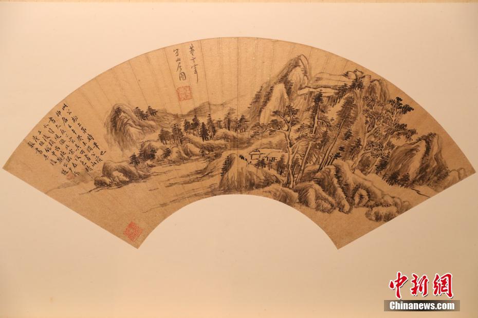12月6日,《丹青宝筏——董其昌书画艺术大展》在上海博物馆揭开面纱。这是中国大陆举办的规模最大的董其昌艺术大展。展览以上海博物馆馆藏文物为主,同时向海内外15家重要收藏机构商借藏品,遴选董其昌及相关书画精品共计154件。图为传世所见董其昌的最早画作《山居图》扇页。中新社记者 张亨伟 摄