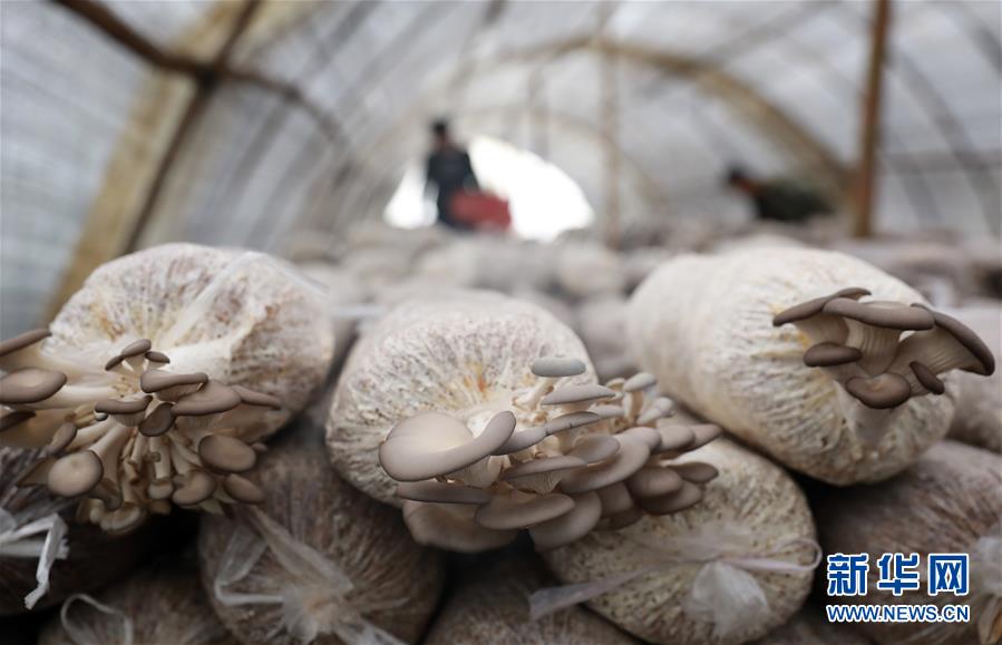 12月5日,在贵州省黔东南苗族侗族自治州丹寨县兴仁镇兴仁村,农民在食用菌大棚里采摘冻菌。大雪节气将至,各地的农民们在大棚里辛勤劳作。新华社发(黄晓海 摄)