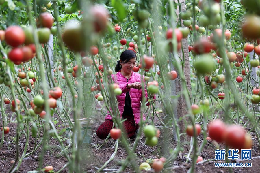 12月6日,山东省临沂市郯城县郯城街道新屯村农民在大棚内采摘西红柿。大雪节气将至,各地的农民们在大棚里辛勤劳作。新华社发(张春雷 摄)