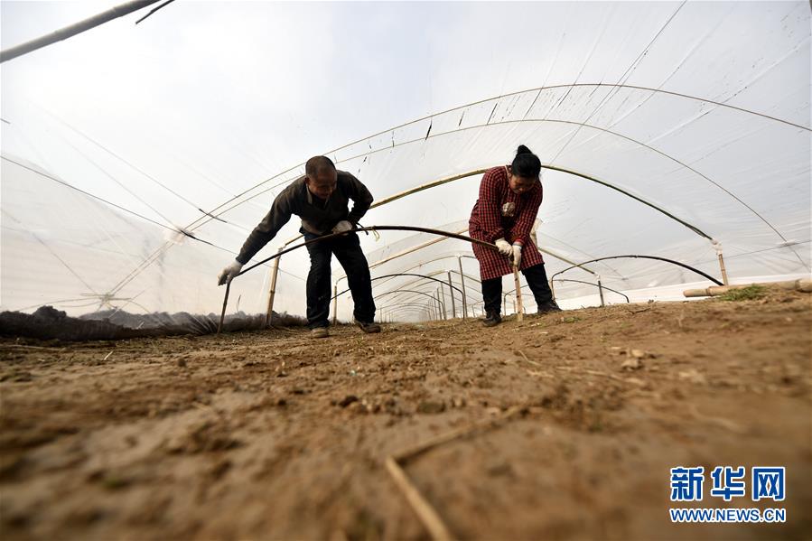 12月6日,山东省聊城市茌平县贾寨镇后寨村的村民在大棚里劳作。大雪节气将至,各地的农民们在大棚里辛勤劳作。新华社发(赵玉国 摄)