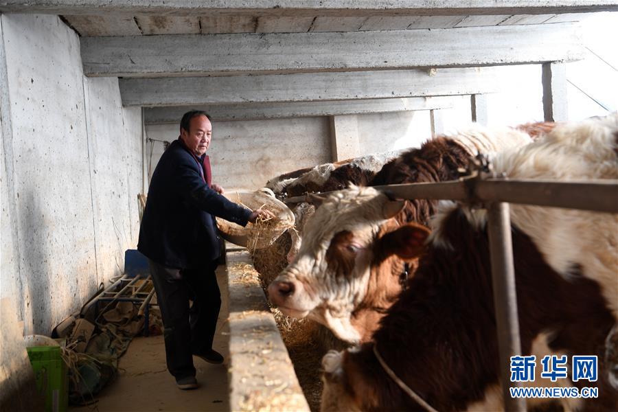 武威市凉州区黄羊镇上庄村村民杨玉山在自家养殖小区内喂牛(12月4日摄)。新华社记者 范培珅 摄
