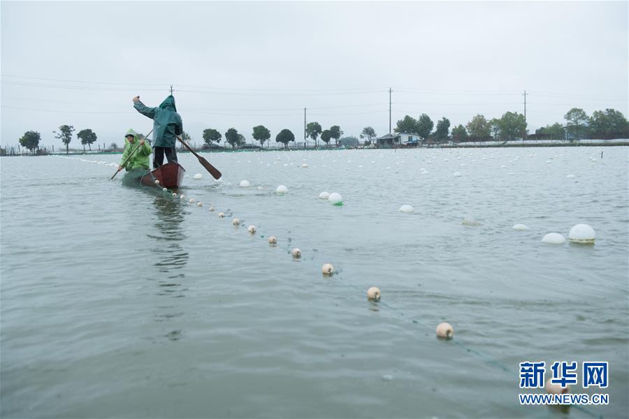 12月6日,山下湖镇广山村一家养蚌场的工作人员在下网捕鱼。该养蚌场通过鱼蚌共养、尾水处理等方式,有效净化养殖水体。 新华社记者翁忻旸摄