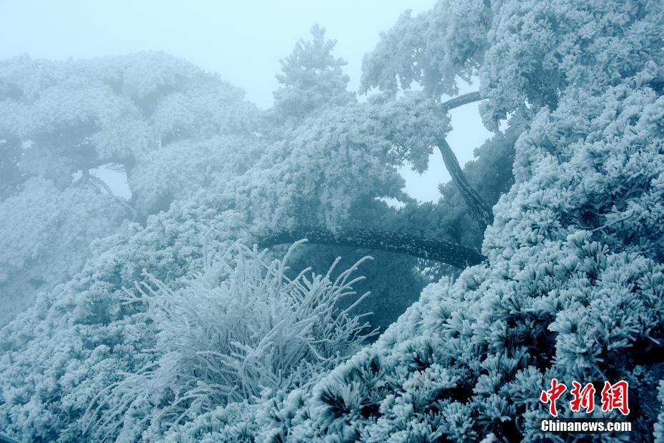 12月7日,大雪覆盖下的黄山松,松枝宛如银针炸放。安徽黄山风景区当日迎来今冬首场降雪。冬雪作为黄山“五绝”之一,每年都能吸引许多摄影爱好者登山创作。中新社发 王辉 摄