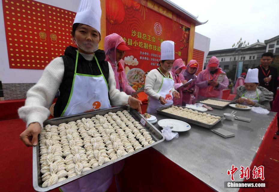 参加决赛的选手展示自己制作的蒸饺。中新社记者 张斌 摄