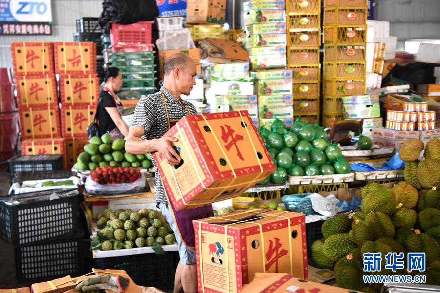 工人在中国-东盟自由贸易区凭祥物流园搬运水果。这个位于广西凭祥边境经济合作区南山工业园区的物流园距友谊关仅有8公里(9月5日摄)。 新华社记者 周华 摄