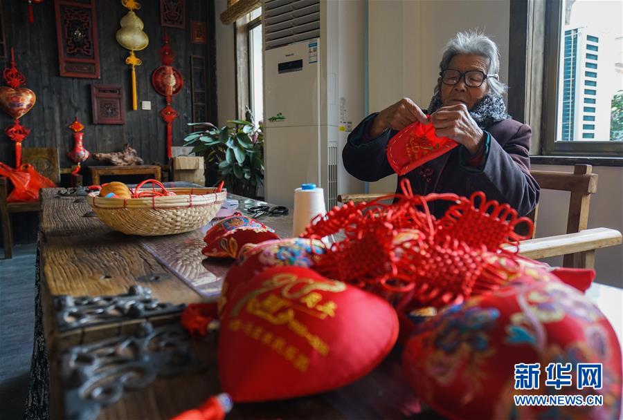 12月8日,在马庄村香包文化大院,一位老奶奶在缝制中药香包。 近年来,江苏徐州贾汪区潘安湖街道马庄村积极推进香包产业发展,带领群众增收致富。2018年,占地2000余平方米的香包文化大院投入使用。香包文化大院集香包研发、制作、销售等功能于一体,带动周边300余名村民就业,村民通过“小香包”得到“大实惠”。 新华社记者 季春鹏 摄