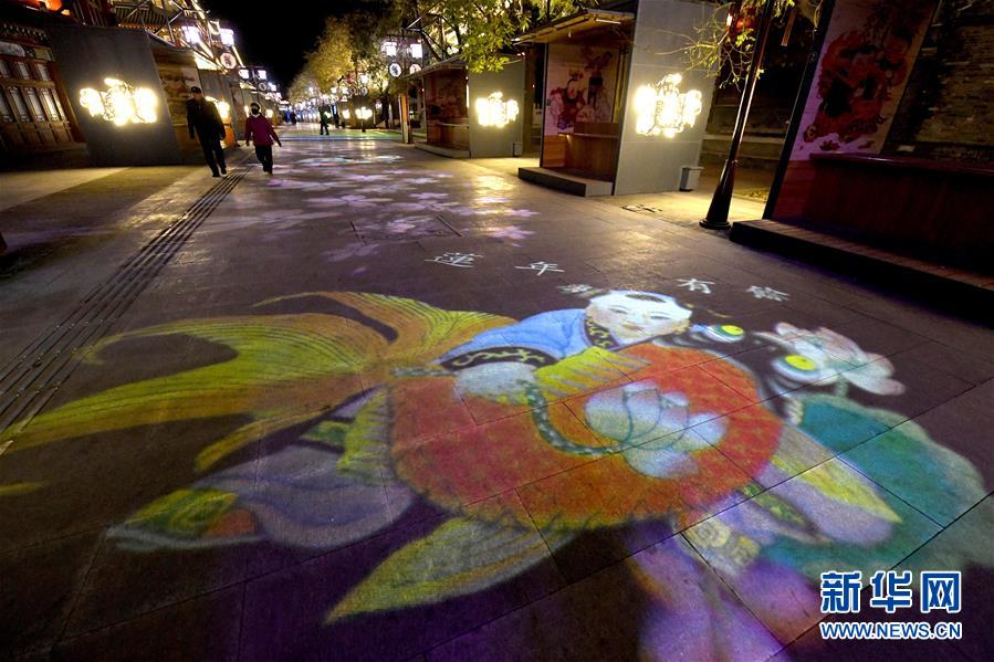杨柳青年画主题灯光布满在天津杨柳青古镇步行街上(12月4日摄)。 运河穿城过,古镇草色新,千年画乡杨柳青自传统中浸润出与众不同的颜色。40年斗转星移,这个沉淀千年的小镇,用别样的风姿讲述了一个历史与现在碰撞而出的改革“新”故事。 新华社记者岳月伟摄