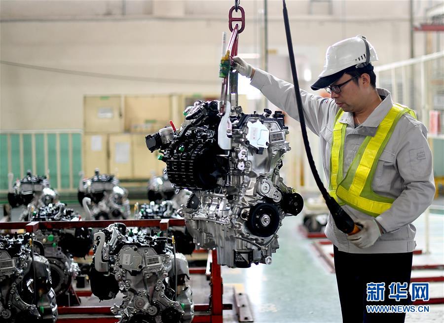 在位于杨柳青镇的天津一汽丰田发动机有限公司的车间里,工作人员在吊装发动机(2018年12月3日摄)。 运河穿城过,古镇草色新,千年画乡杨柳青自传统中浸润出与众不同的颜色。40年斗转星移,这个沉淀千年的小镇,用别样的风姿讲述了一个历史与现在碰撞而出的改革“新”故事。 新华社记者岳月伟摄
