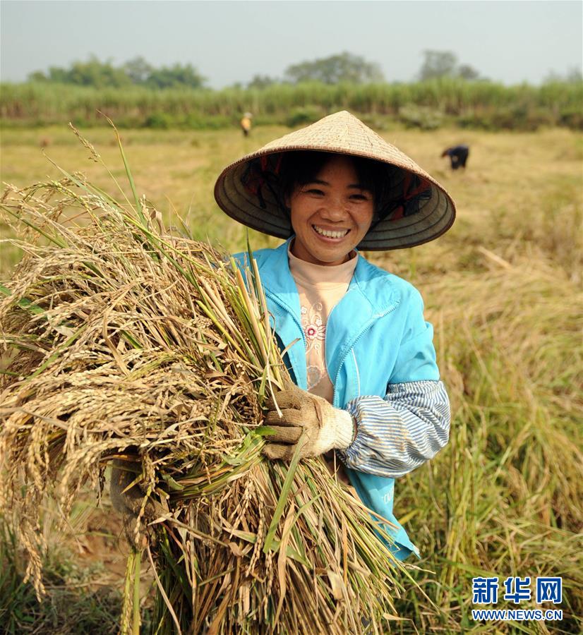 广西凭祥市群众在收获秋稻(2008年11月16日摄)。 (配本社同题文字稿) 新华社记者张爱林摄