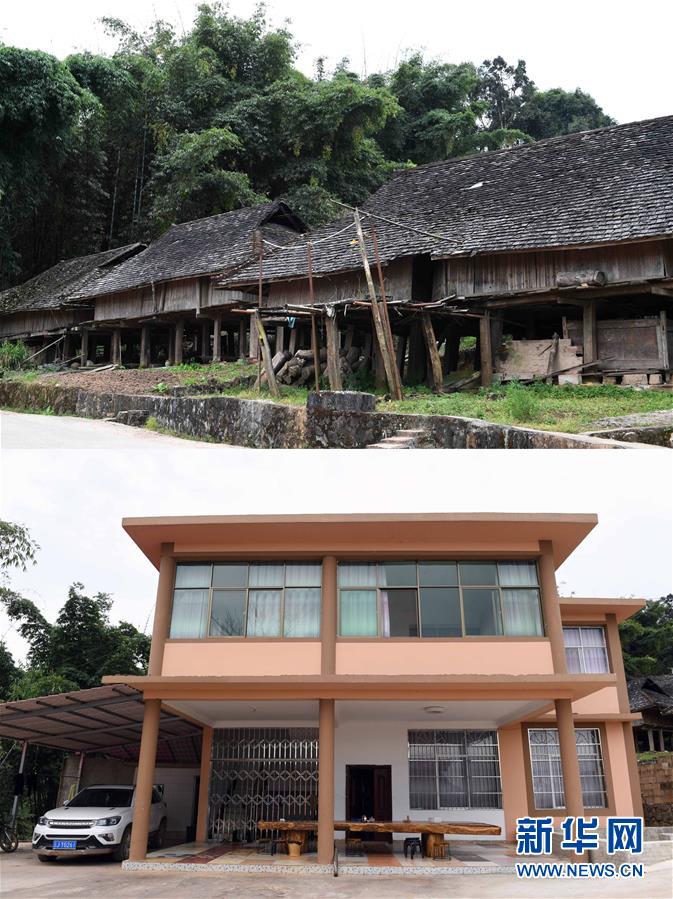 这是12月7日拍摄的云南省西盟佤族自治县勐梭镇班母村第十村民小组老寨(上图)和新房(下图)。 新华社记者杜涓涓摄