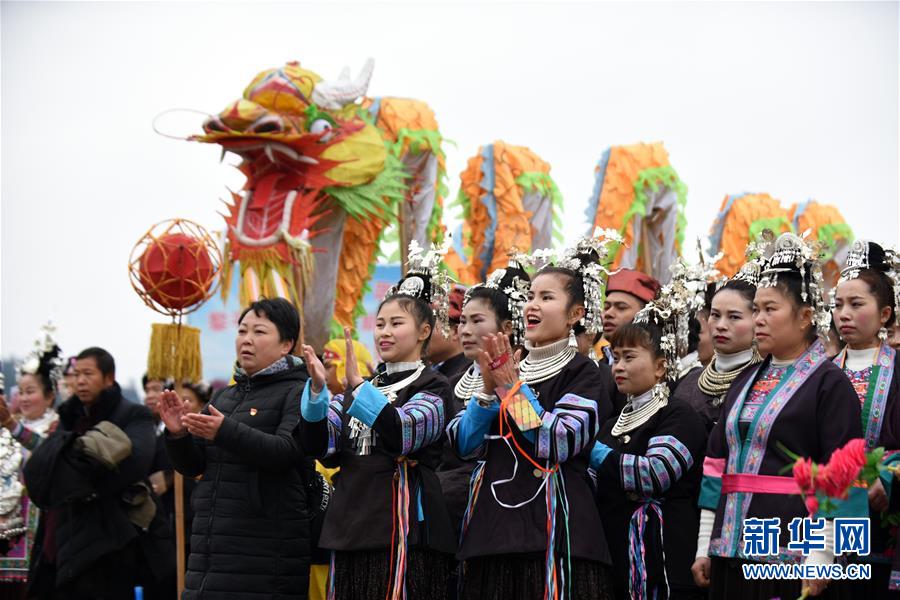 12月9日,在贵州省黎平县中潮镇佳所侗寨,侗族同胞盛装参加侗年活动。 新华社发(杨文斌 摄)