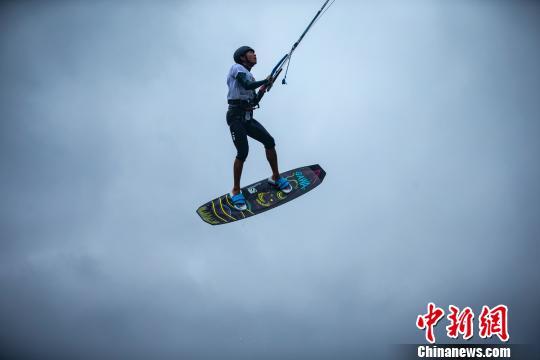 海口:风筝帆板选手浪中激烈角逐