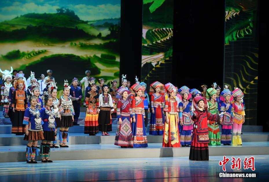 12月9日晚,庆祝广西壮族自治区成立60周年文艺晚会《壮志飞扬》在南宁市上演,图为民歌联唱《山歌好比春江水》。中新社记者 侯宇 摄
