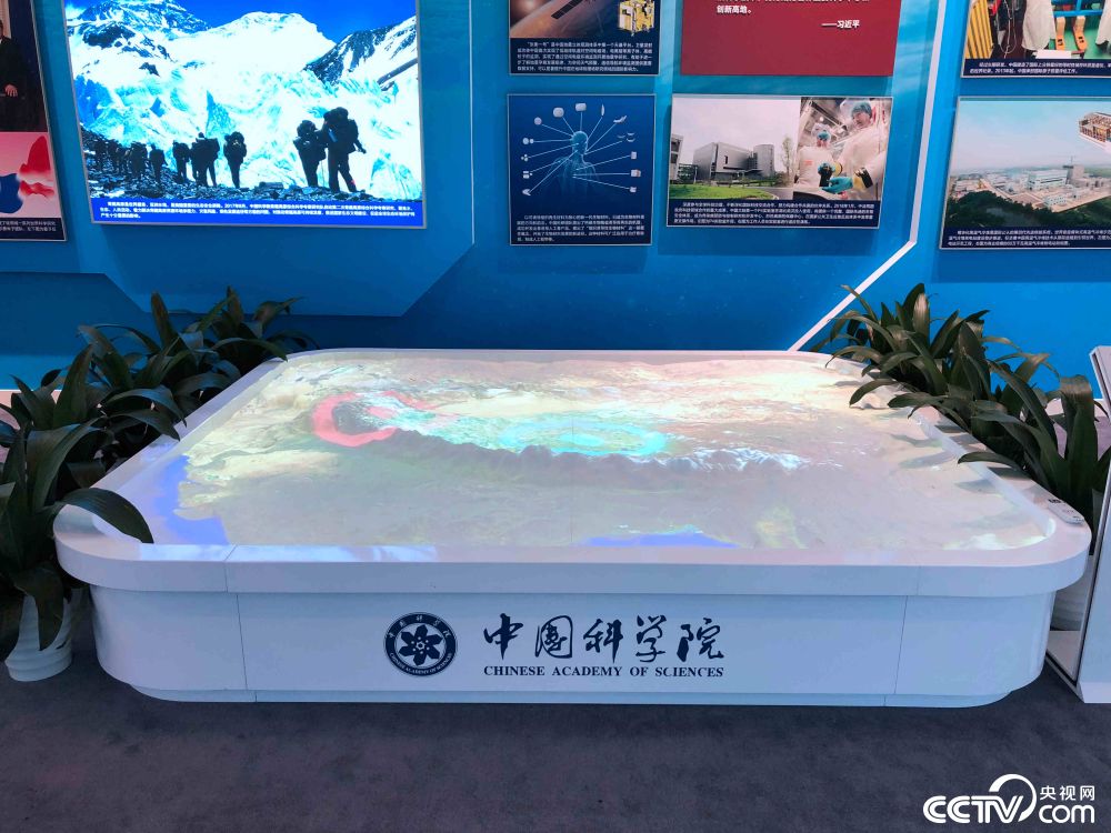 青藏高原地质地貌实景互动投影沙盘。青藏高原是中国最大、世界海拔最高的高原,被称为世界屋脊、亚洲水塔,是开展地球与生命演化、圈层相互作用及人地关系研究的天然实验室。