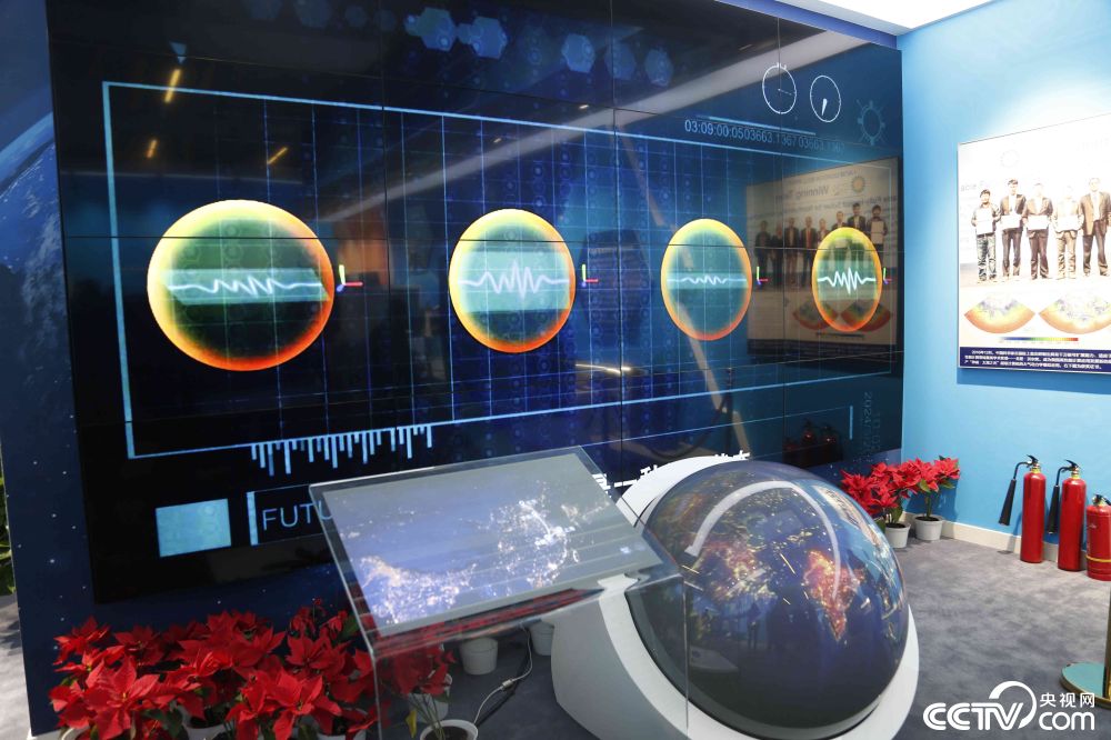 量子保密通信互动体验装置。采用球屏联动、人机互动方式,展示量子保密通信原理和首次洲际通信内容,虚拟体验“量子号”卫星、京沪干线构建天地一体化量子保密通信全过程。