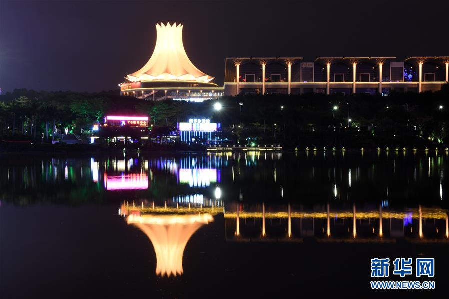 广西南宁国际会展中心倒映在水面(12月10日摄)。 新华社记者 陆波岸 摄