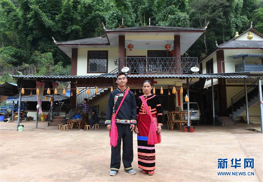 12月11日,孟连县娜允镇娜允村村民铁建发(左)和妻子在自家新居前留影。 新华社记者 杨宗友 摄