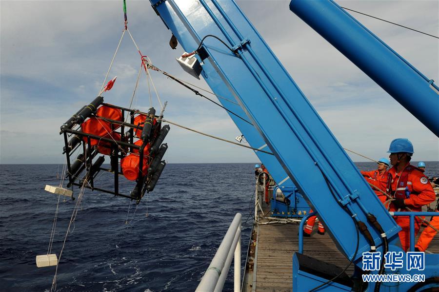 考察队员将负责采集海水的“彩虹鱼”第二代着陆器回收到甲板(12月11日摄)。 由上海海洋大学和西湖大学联合组成的“彩虹鱼”科考团队,12月11日在全球最深的海沟——马里亚纳海沟成功完成两台“彩虹鱼”第二代着陆器的万米级海试,深度分别为10918米和10899米。新华社记者 张建松 摄 图片来源:新华网