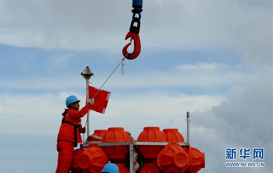 考察队员对“彩虹鱼”着陆器进行挂钩作业(12月10日摄)。 由上海海洋大学和西湖大学联合组成的“彩虹鱼”科考团队,12月11日在全球最深的海沟——马里亚纳海沟成功完成两台“彩虹鱼”第二代着陆器的万米级海试,深度分别为10918米和10899米。新华社记者 张建松 摄 图片来源:新华网