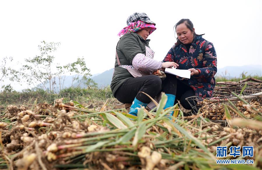 寒冬时节,贵州省黔东南苗族侗族自治州丹寨县1600多亩生姜迎来丰收,各乡镇合作社的社员们抢抓天气,加紧生姜的采收、去枝、清理、运送、分拣等工作,确保市场供应。 新华社发(黄晓海 摄)
