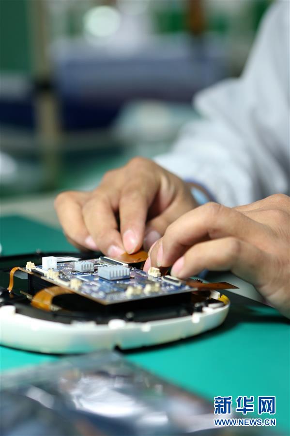 12月12日,在汕头市澄海区,工人在一家玩具企业生产线上组装智能玩具产品。 新华社记者 张加扬 摄