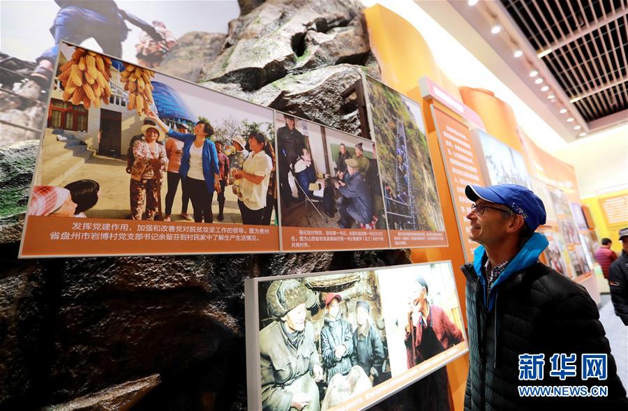 一名来自以色列的参观者在中国国家博物馆举行的“伟大的变革——庆祝改革开放40周年大型展览”上观看展出的图片(12月6日摄)。 新华社记者 潘旭 摄