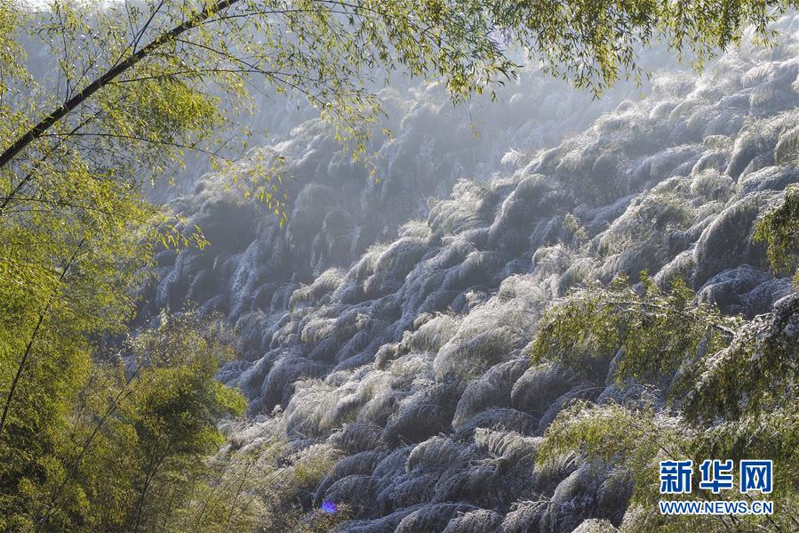 这是12月13日拍摄的安徽省霍山县佛子岭镇大林村竹林雪景。新华社发(徐程 摄)