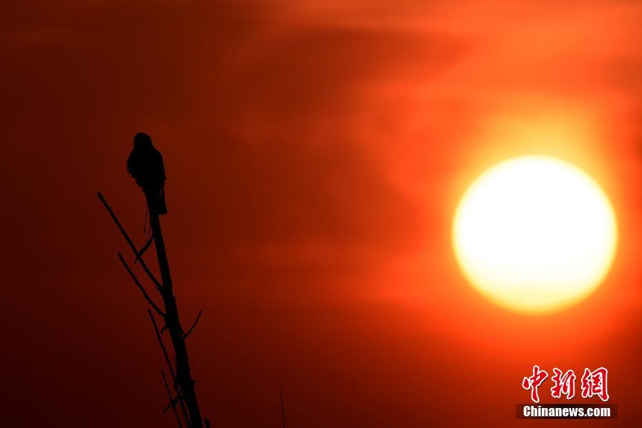 12月13日傍晚,隆冬时节新疆克拉玛依夕阳映满天,市郊农业综合开发区,一轮夕阳挂在金色的芦苇上。在夕阳的照射下,栖息枝头的鸟儿在夕阳的照射下形成了美丽的剪影。该市南郊古海生态公园夕阳与植被构成一幅美丽的田园风光画卷,给隆冬的克拉玛依带来一丝丝暖意。尤其是傍晚时分,阳光穿过乌云,映照在芦苇、树木、建筑上,泛出金色光芒,美景怡人。闵勇 摄