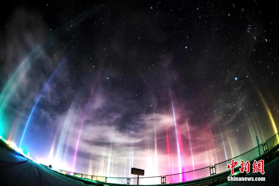 12月13日凌晨3时,在青海省海西州茶卡镇上演极美光柱,吸引了摄影爱好者驻足拍摄。光柱(Lightpoles)是一种罕见而有趣的自然现象,只有在非常寒冷的夜里才有可能发生。当天气很冷,冰从高层落下时,会形成平板,形状就像是一些冰晶。冰晶反射的光几乎完全是垂直的,因此产生光柱效应。朱剑男 摄
