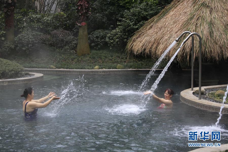 12月14日,游客在重庆市北碚区海宇温泉景区内泡温泉。新华社发(秦廷富 摄)